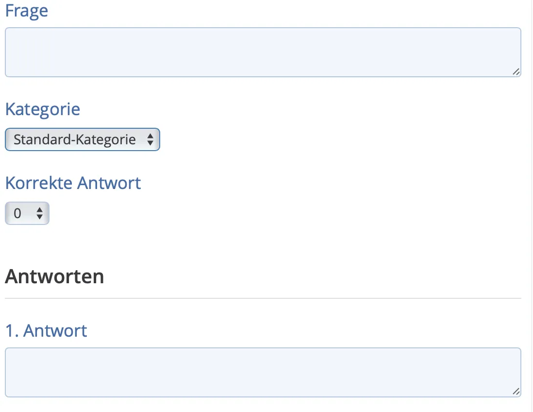 5. Gebt die Fragen und die Antworten ein und wählt die Kategorie