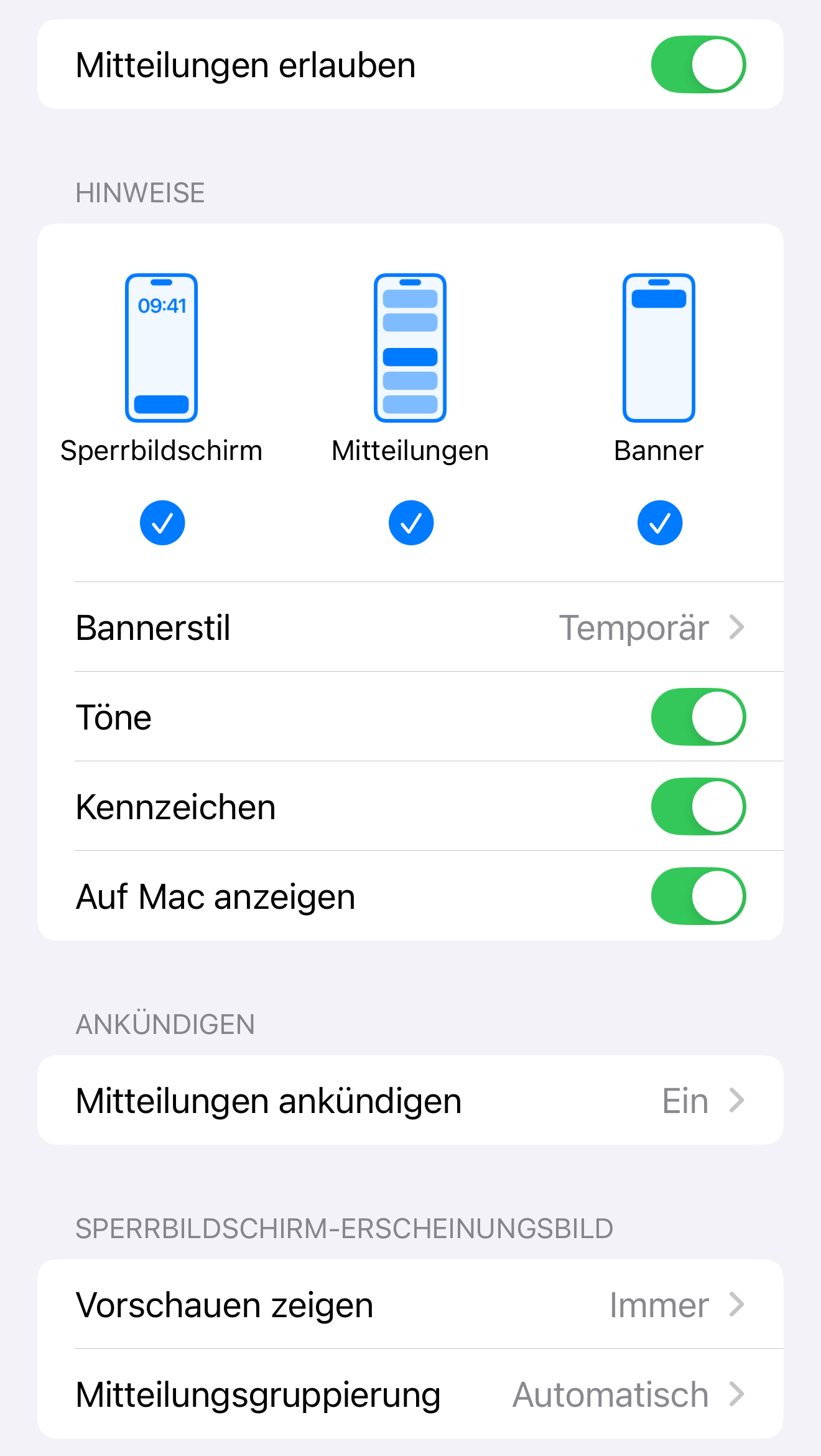 Mitteilungen erlauben auswählen.